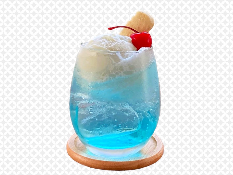 かき氷シロップで大人気のブルーシロップ。青いクリームソーダにもぴったり。