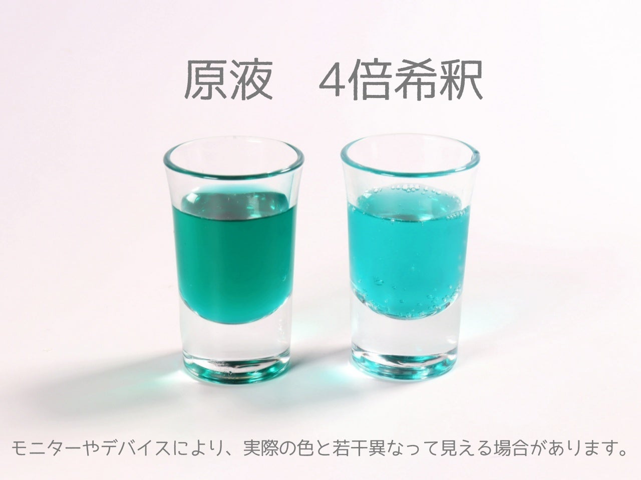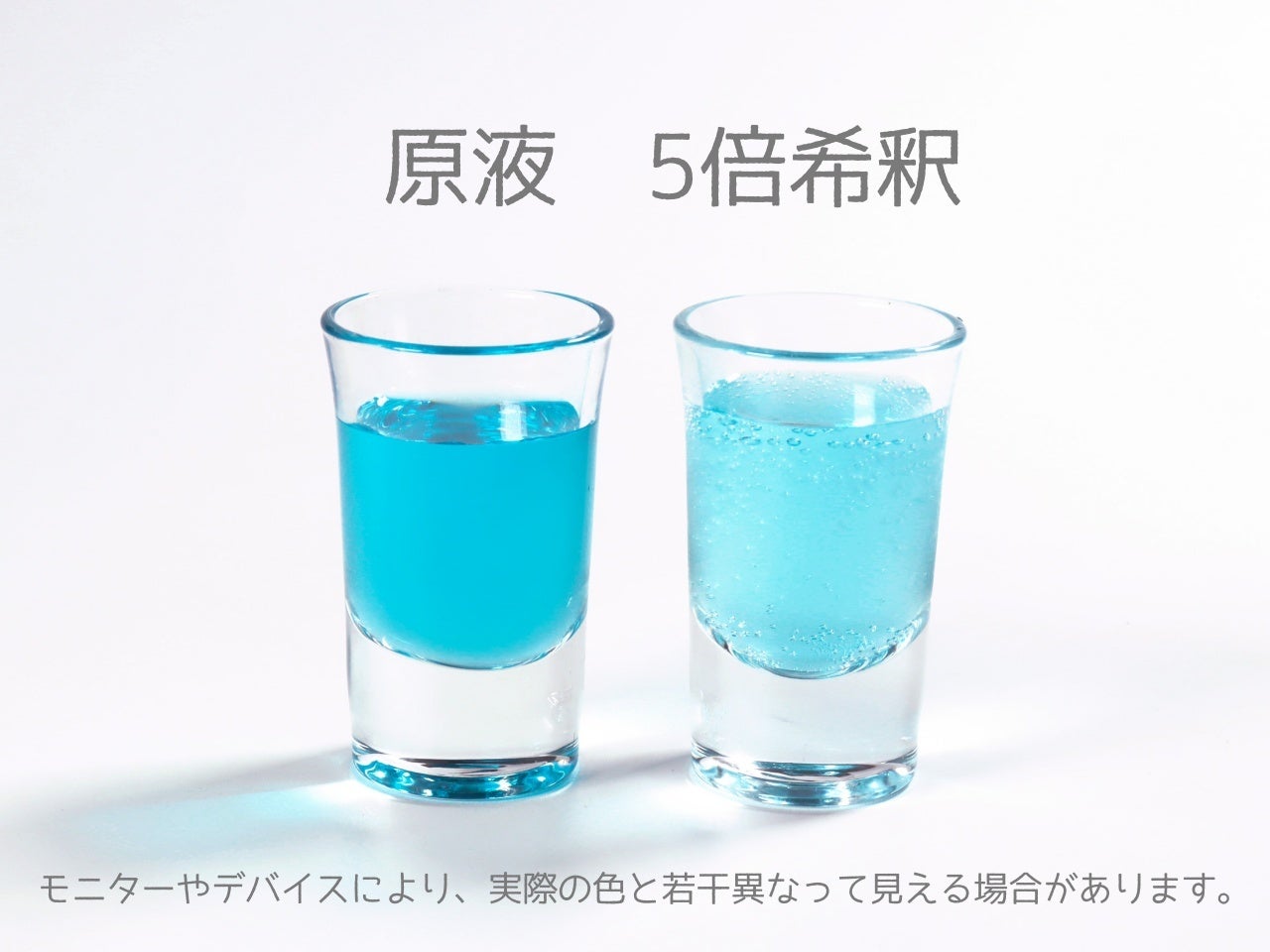 原液は深いラグーンブルー、希釈すると透明感のある水色になります。8倍希釈が標準です。