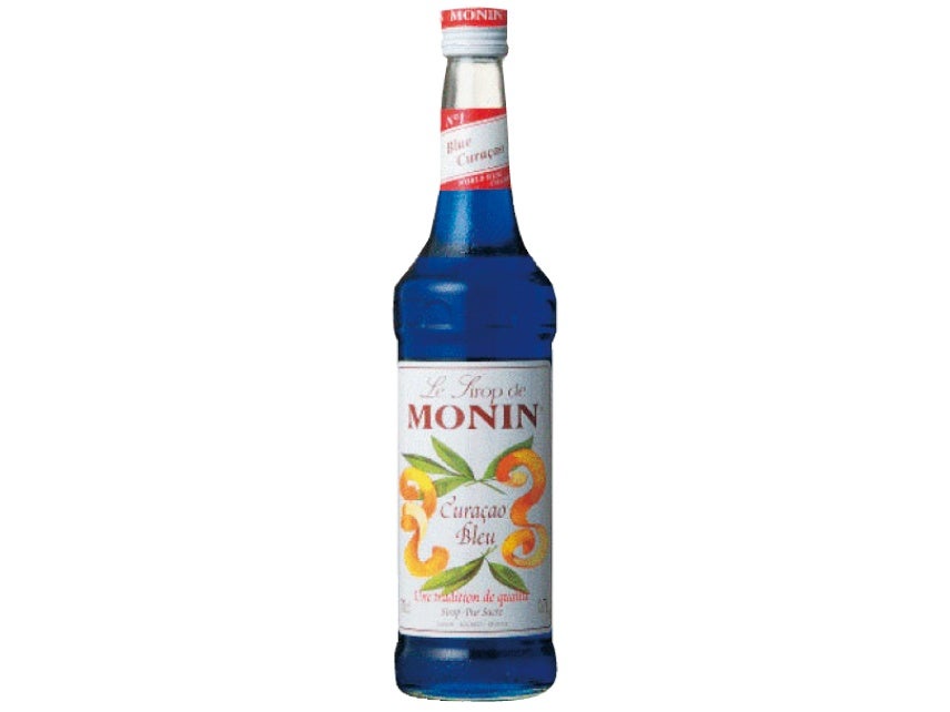 オレンジ果皮の風味のシロップ。鮮やかな青色がカクテルの色づけに最適です。標準9倍希釈用。