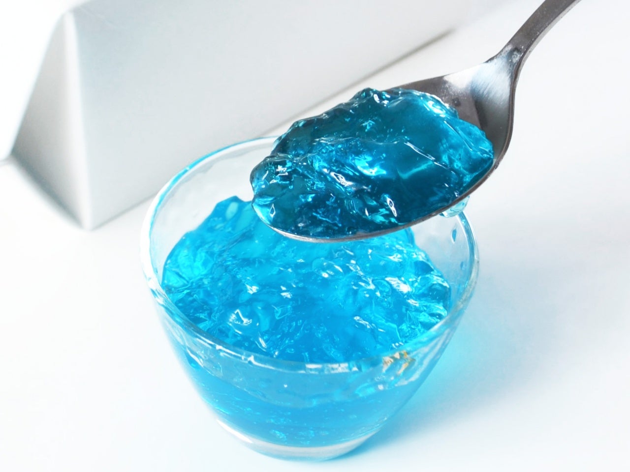 パイナップル果汁を使い、ブルーハワイをイメージした、キラキラでカラフルなクラッシュゼリー。フォトジェニックなドリンクやデザートを作れます。