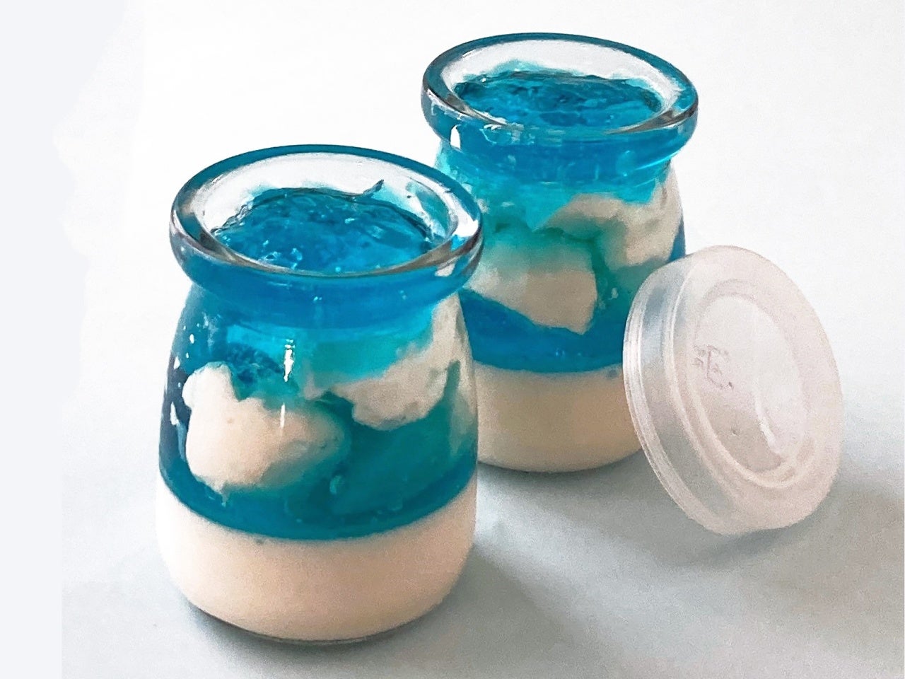 「青空ミルクプリン」スイーツに入れるほか、飲むゼリーとしてドリンクにもどうぞ。
