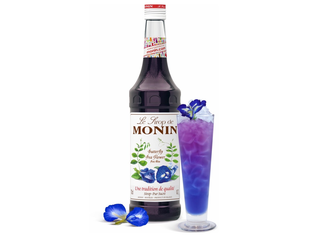 豆科の青い花”バタフライピー”を使った、ほんのり甘く、優しい香りのシロップです。レモンなど酸を加えるとサファイヤブルーからパープルに色が変わります。標準9倍希釈用。