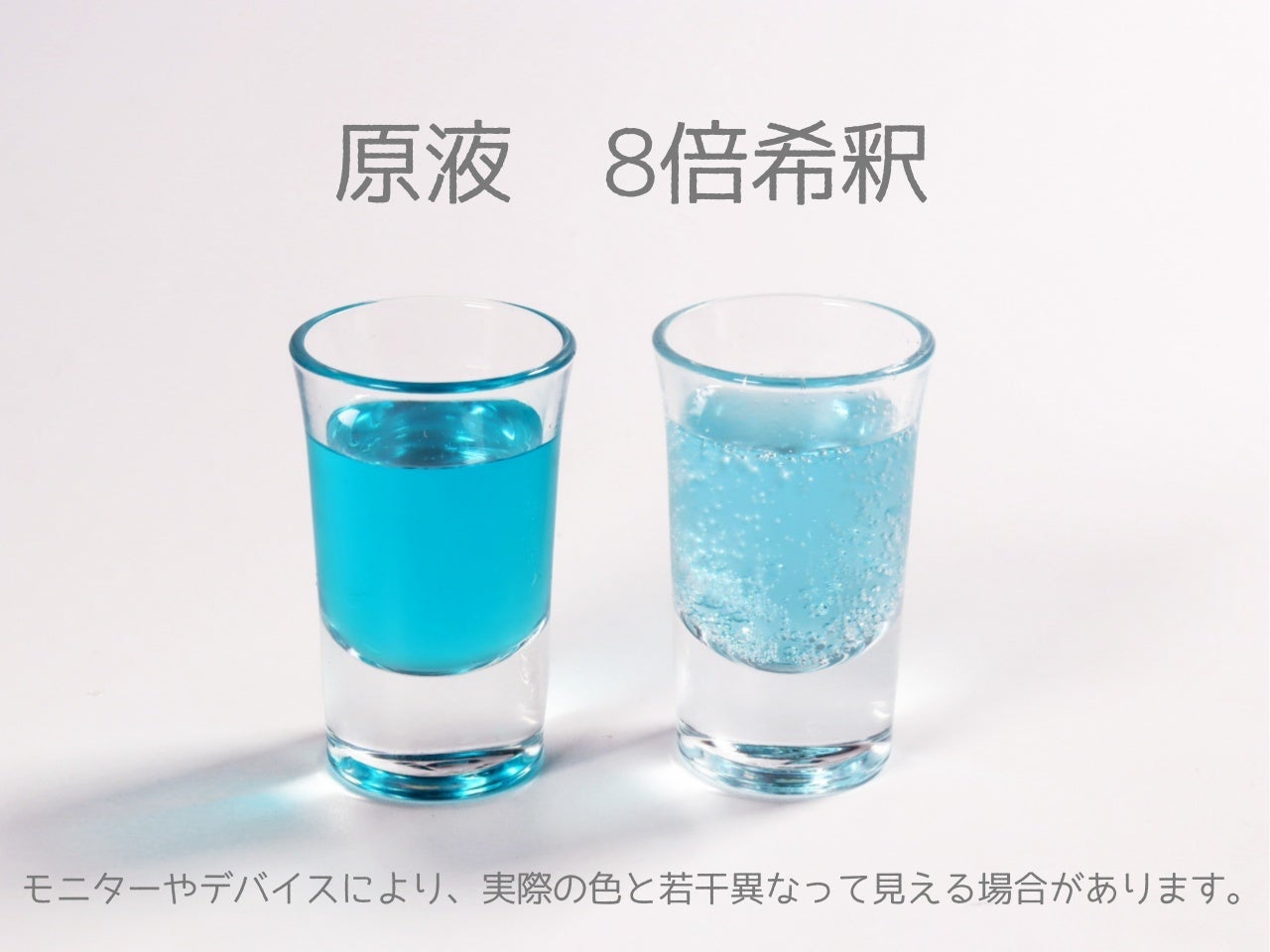 標準5倍希釈用です。炭酸の泡がきらめく透明感のあるクリアブルー。