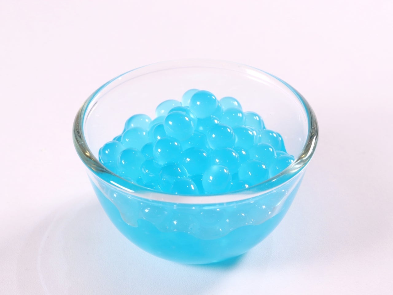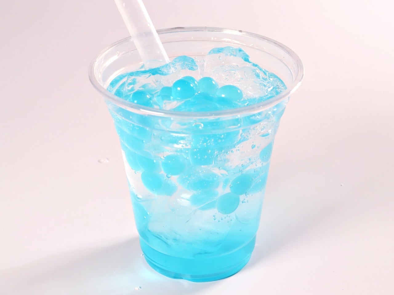 海藻由来の膜でジュースを包んだ、イクラみたいな「食べるジュース」です。タピオカのように沈まず、ドリンクの中で漂ってきれいです。
