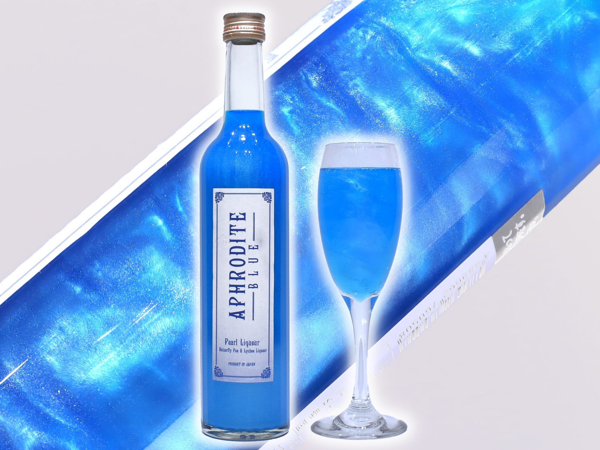 パールパウダーが液中でゆらめいてキラキラ光り、柑橘やライチのような香りが華やかな、パールブルーが美しいリキュールです。ゆらめきを楽しんでいただくためマドラーを添えての提供をおすすめします。