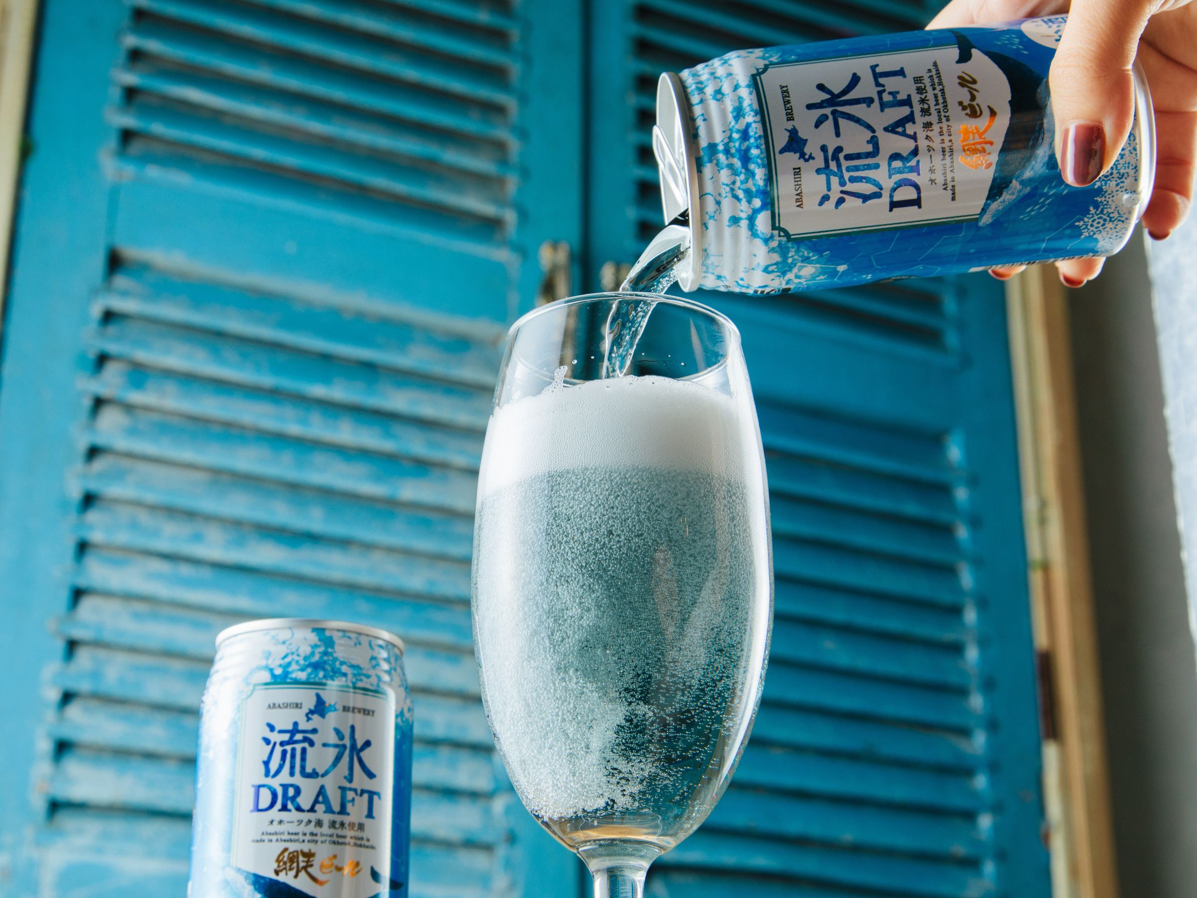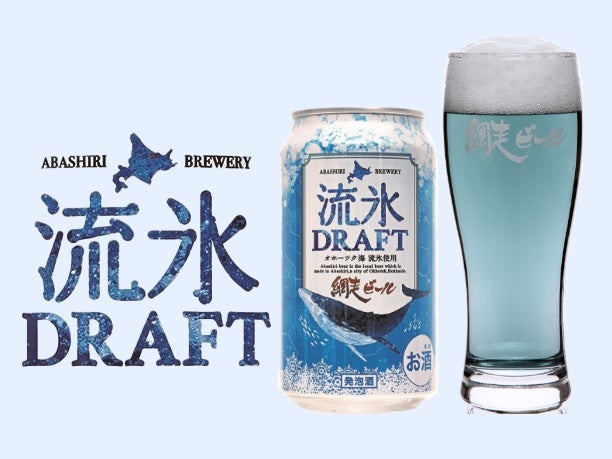青いビール!? オホーツク海の流氷を仕込水に使用した、苦みの少ないさっぱりとした味わいのドラフトビールです。