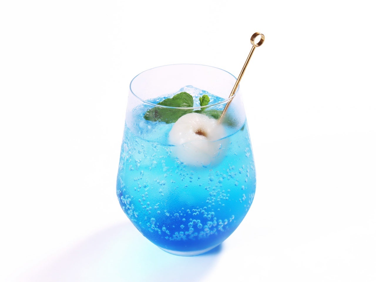 ライチリキュールの香りと味わいをノンアルコールシロップにしました。甘やかな香りと南国の海のような深いブルーがエキゾチックな気分に。