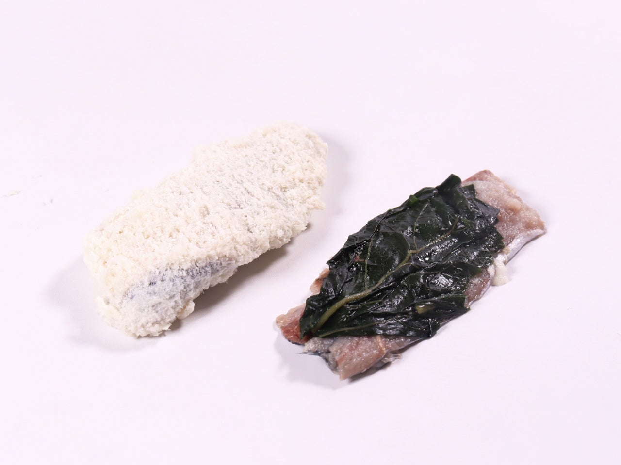 船凍原料のさんまをおろして大葉をのせてパン粉付けしました。個体差はありますが、目安として長さ8~10cm程度。