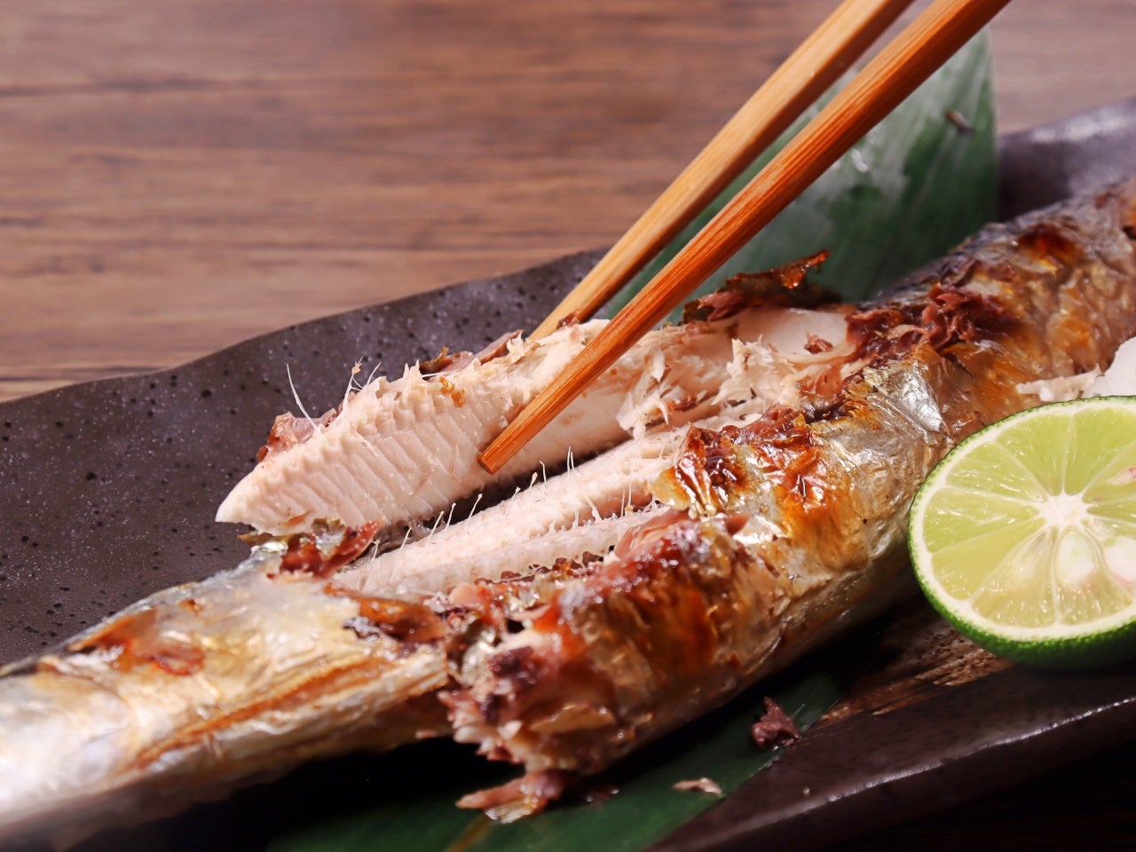 ふっくらとうまみのあるさんまに大葉が香ります。
