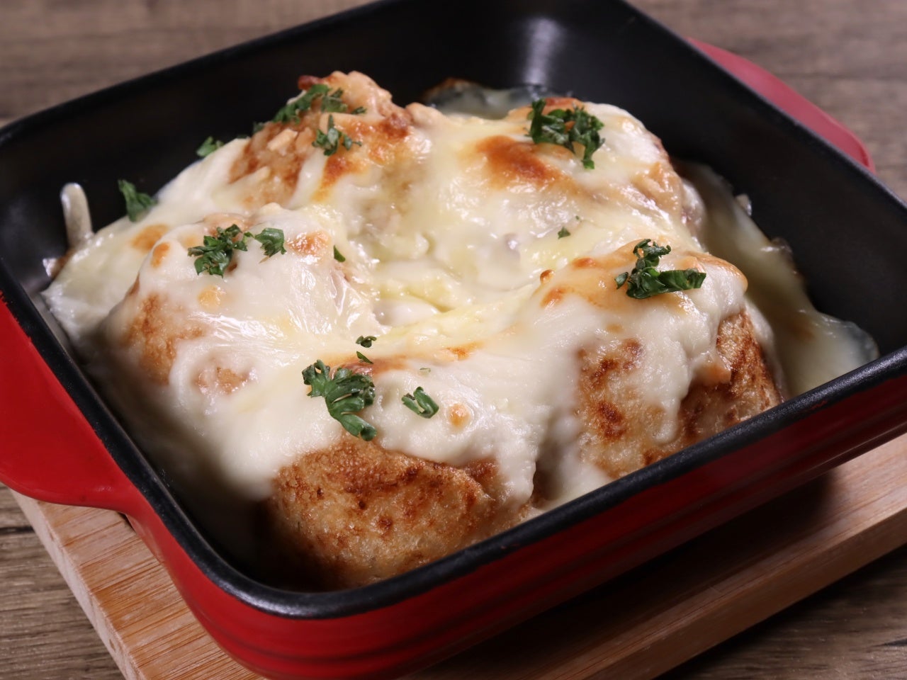 たこ焼きグラタン。「ホワイトソースがちょっと要る料理」に都合がいい商品です。