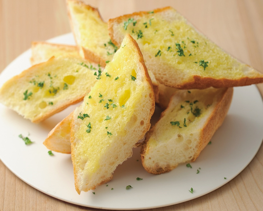 液状だから塗り広げもかんたん、染みてておいしいガーリックトーストに。