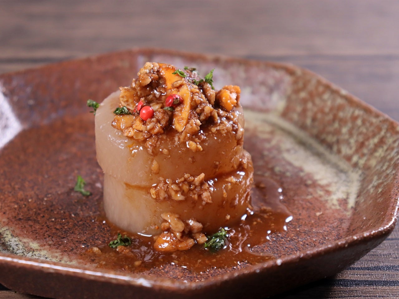 おでん大根のあんきもバルサミコソース