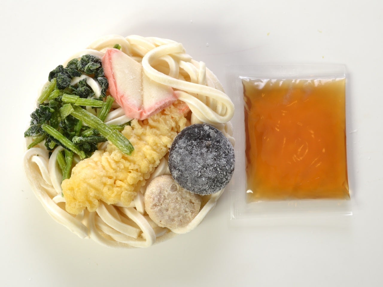 具がのった麺と濃縮スープの1食セット。うどんはしっかり200g。