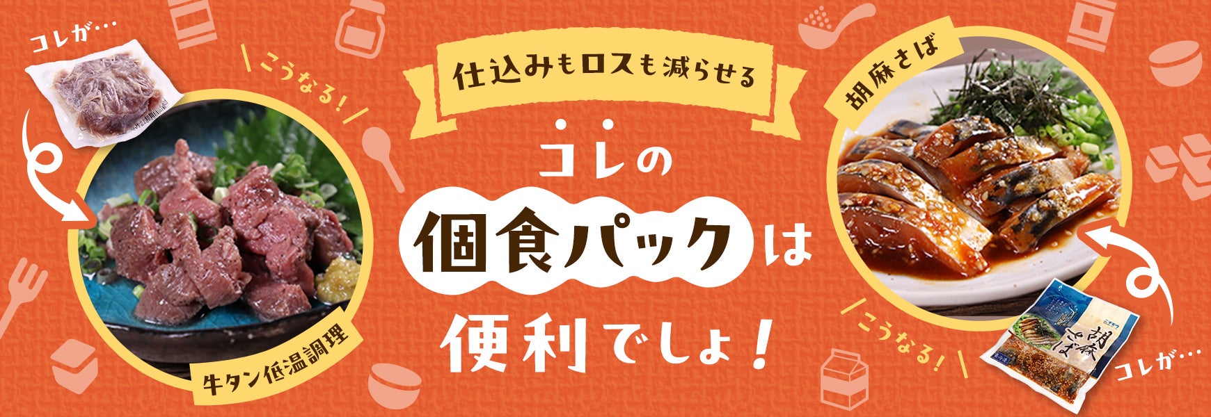 ここにご紹介するものはメニューとしては珍しくないかもしれません。でもそれが個食パックだったら?…お店の「楽ちん」が全然違います!