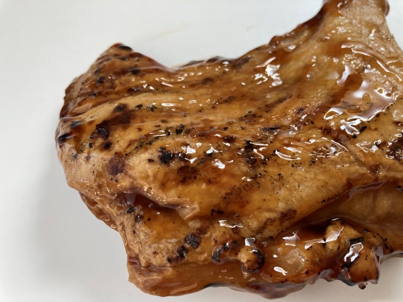 裏は骨に沿って肉を開いてあるので、骨離れよく食べやすくなっています。味付けは下味程度なので、お好みのタレやソースで調味してください。