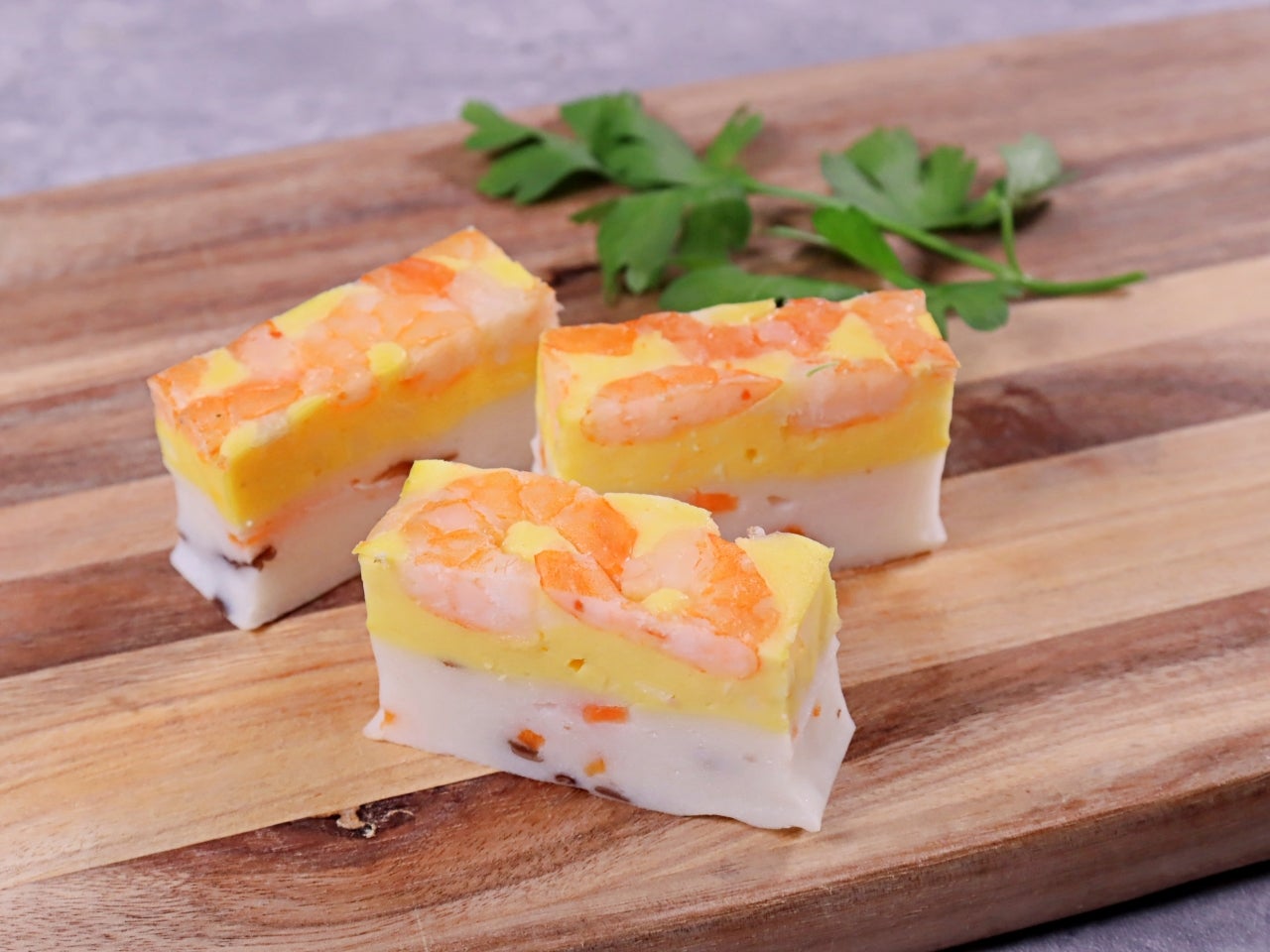 ハレやかなパーティの季節では、食べておいしいのはもちろんのこと、見てつい箸がのびる、例えばビュッフェに並んでいたらなくなる前にキープしたくなる、そんな見た目のおいしそう感が大事なポイント。