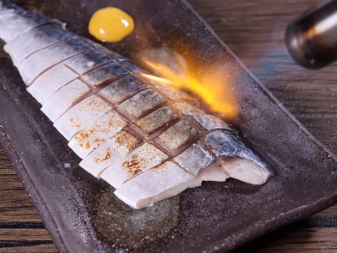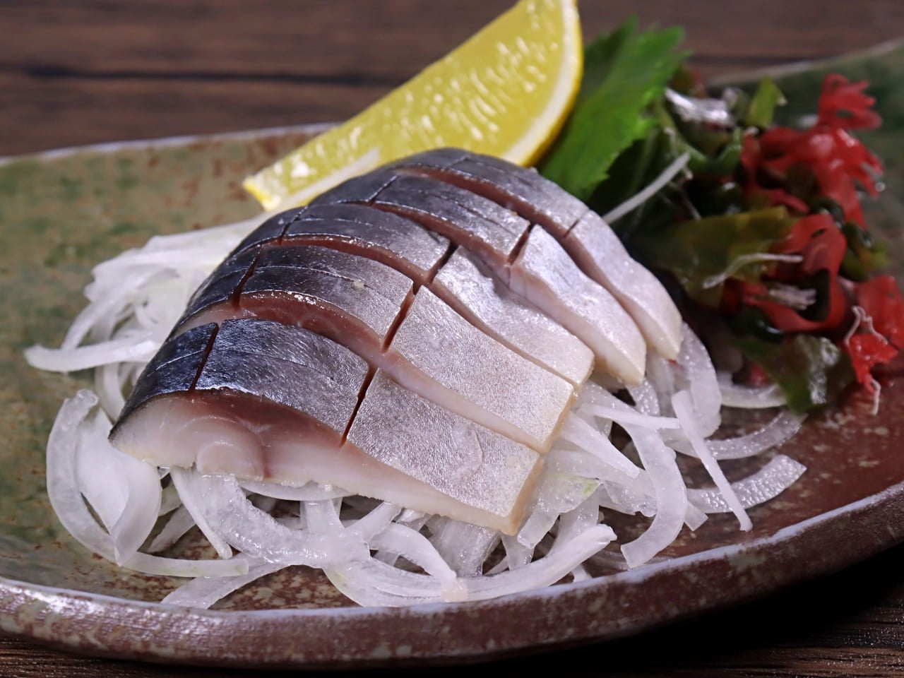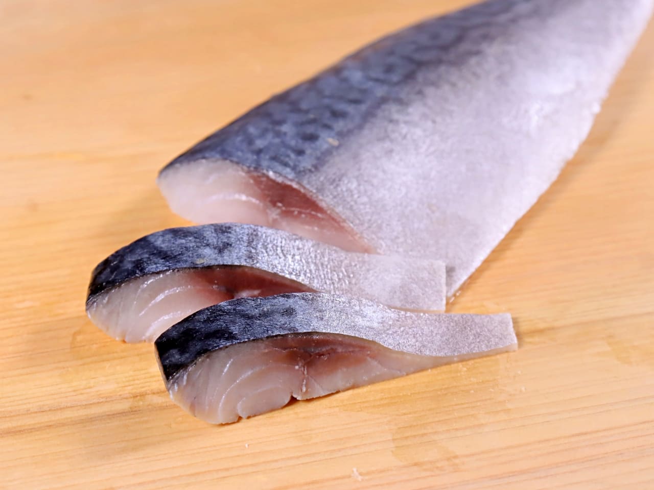 ノルウェーさばは、日本近海さばに比べて脂が多く、酢〆にしても身が固く締まりにくく脂を感じることができます。