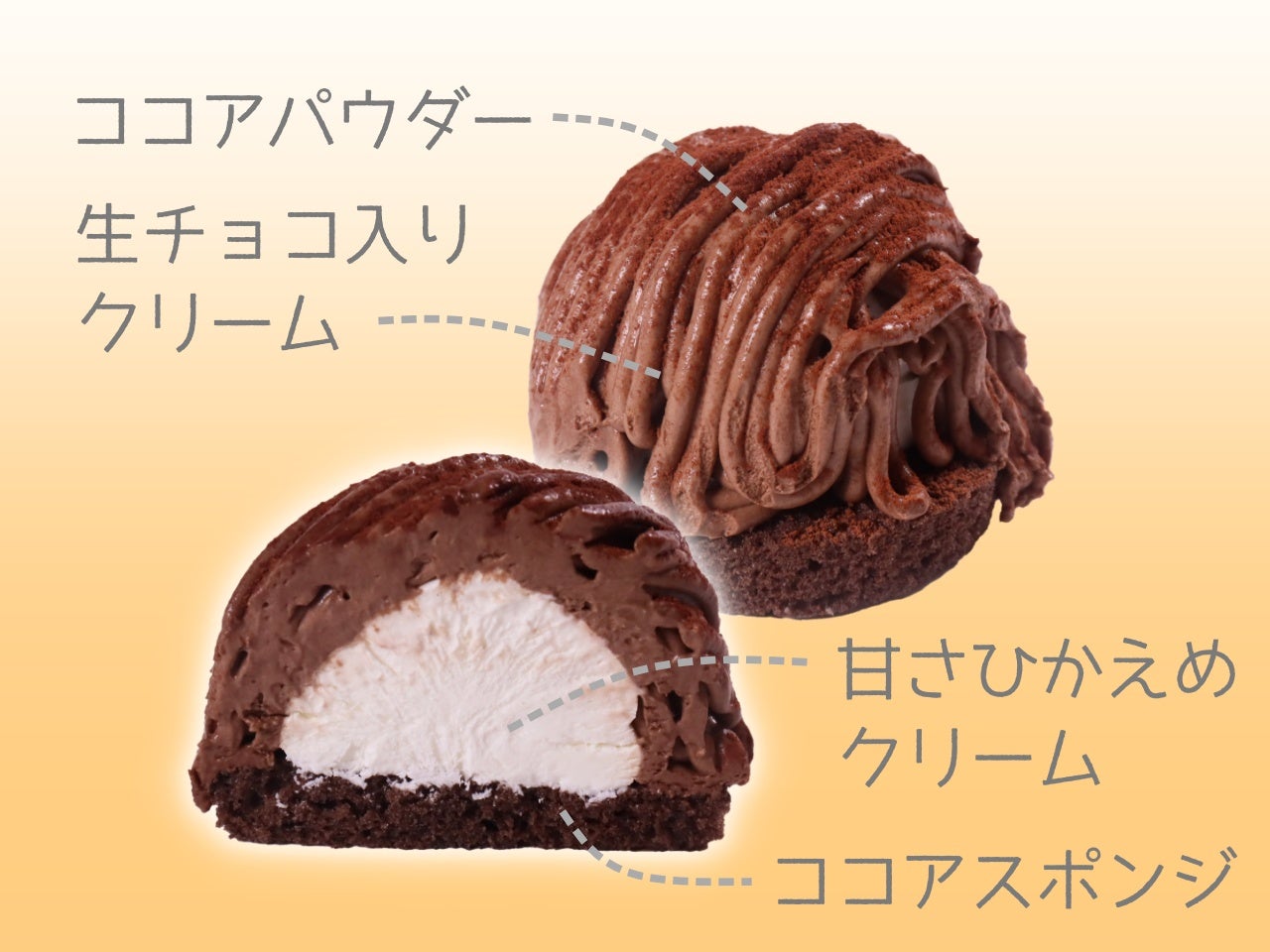 中のホイップは甘さ控えめ。ビタースイートなチョコの風味を引き立てます。