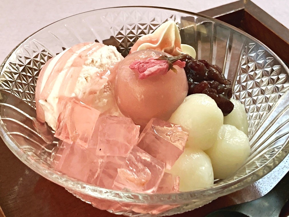 そんな桜もちをモデルに生み出されていた桜の和菓子やスイーツの数々が、食事や喫茶のひとときをこころ安らぐものにしてくれます。