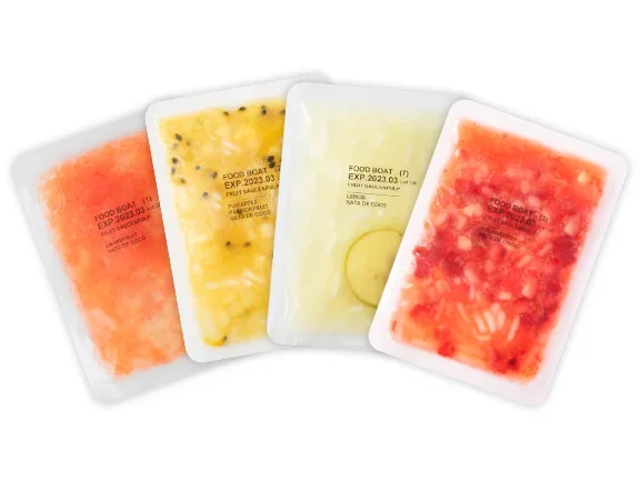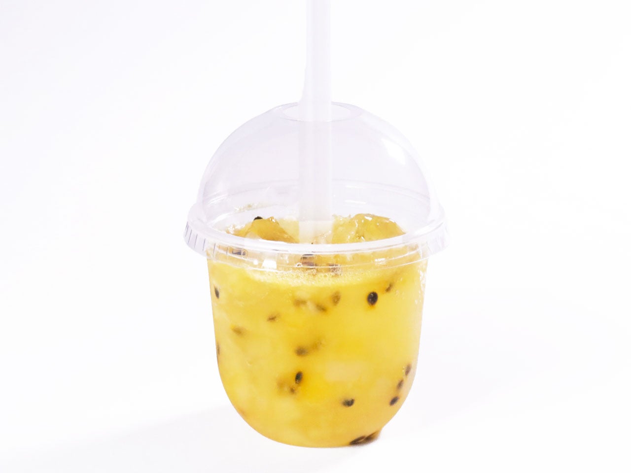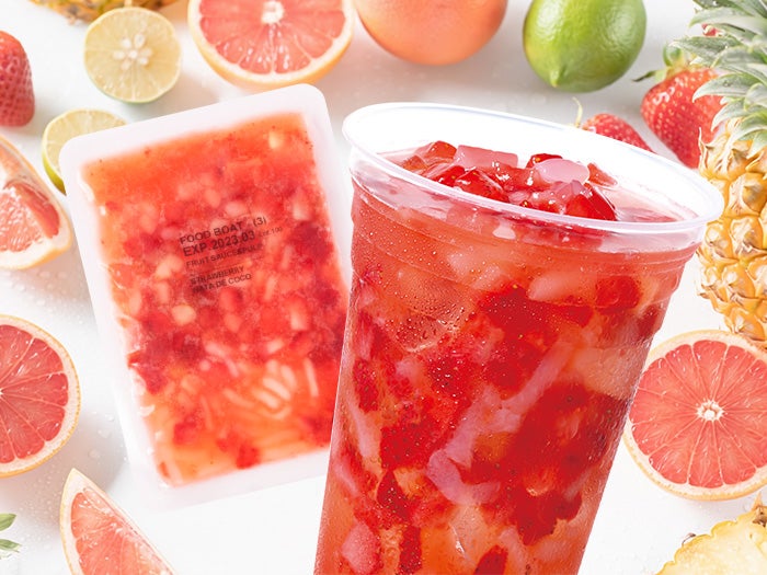窒素凍結したフレッシュな果実・ナタデココ・果汁シロップをパック。ナタデココは、タピオカストローで吸える大きさにカットされています。