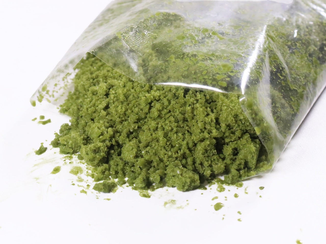 ②冷凍のまま、軽くもみほぐしてカップに入れてください。解凍しても使えます。