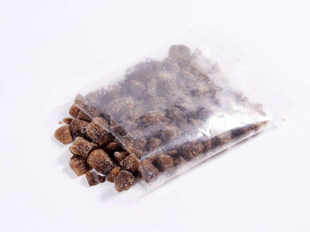60gずつの1人前パックに小分けされたチップ状の味付き氷です。ミルクがよく合う「氷カフェ」シリーズと、ソーダ類がよく合う「カクテル用氷」シリーズがあります。