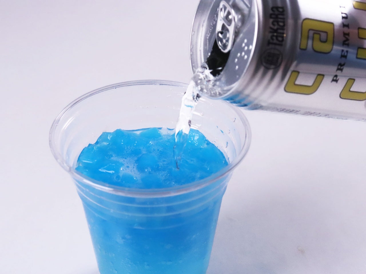 溶けると濃くなる、ミルクやソーダを入れておいしい「食べて飲む粒氷」