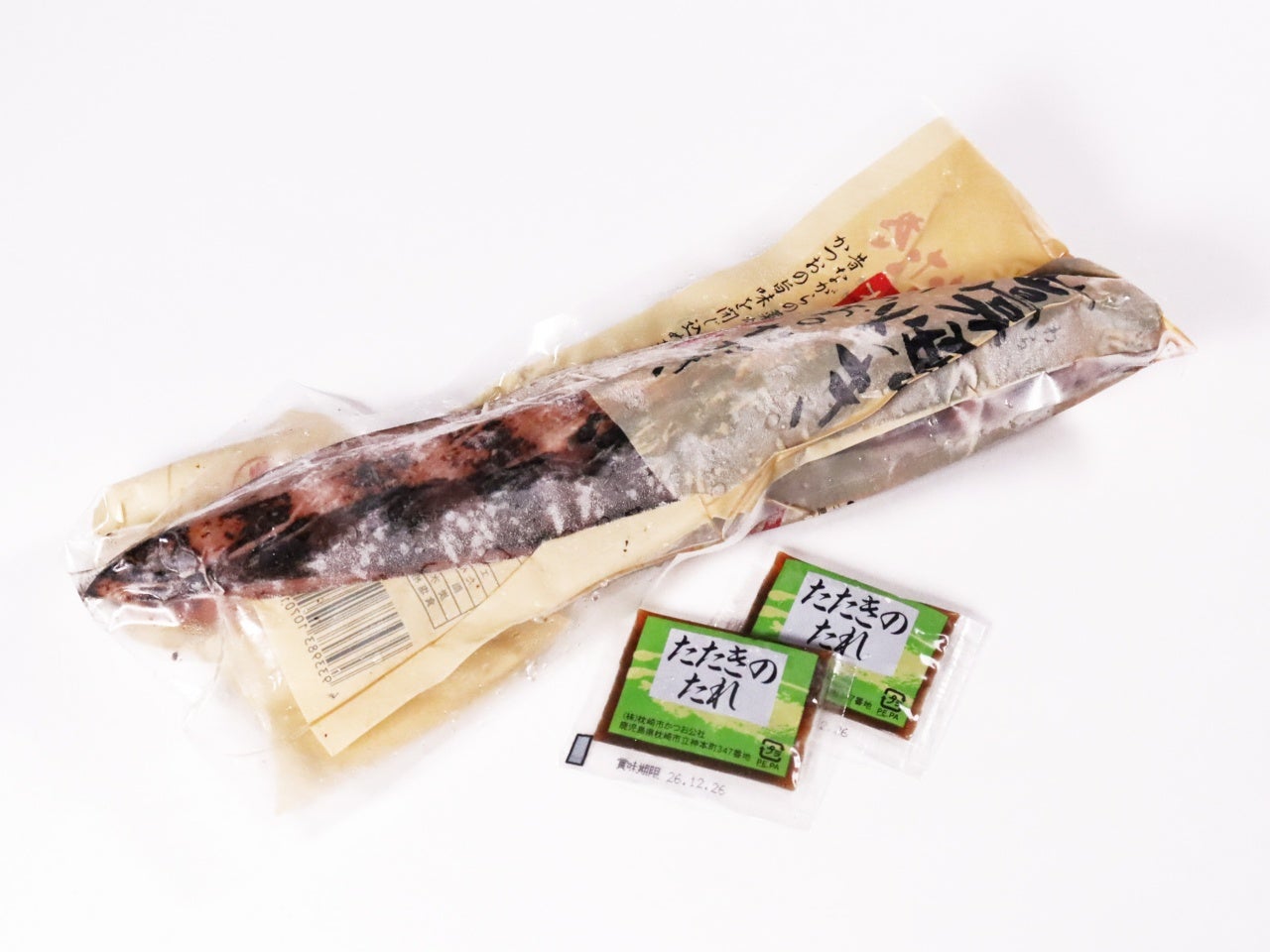 たれ付きで便利。比較的安価なB原料・ガス焼きのかつおのたたき。