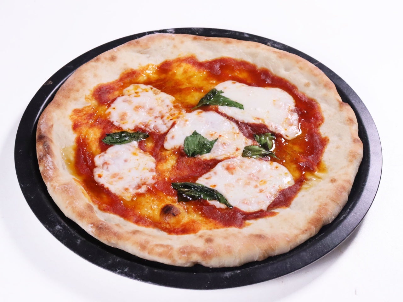 直径およそ23~25cm程度にのばして、約250℃のオーブンで5~6分を目安に焼き上げてください。