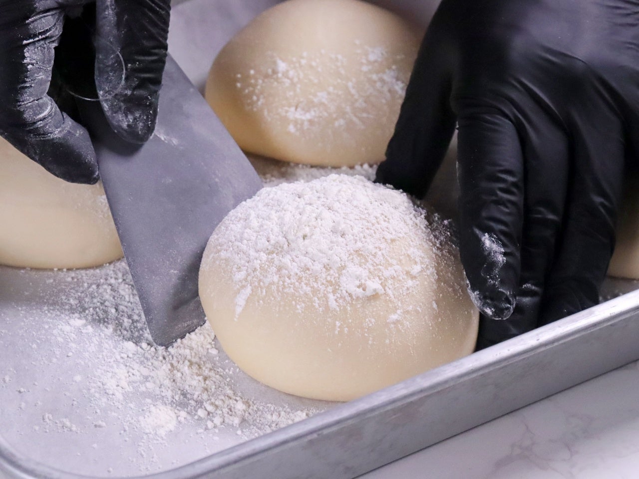 ③打ち粉をしてスケッパーなどで優しく取り出します。