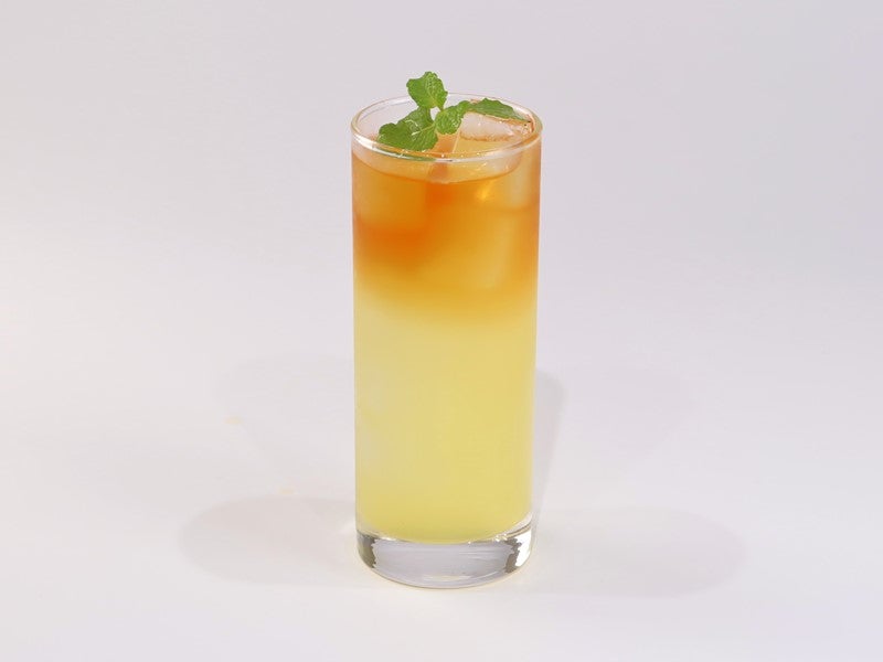 - グラスに氷を入れて「青森県産 津軽りんごエード」と水を入れる。