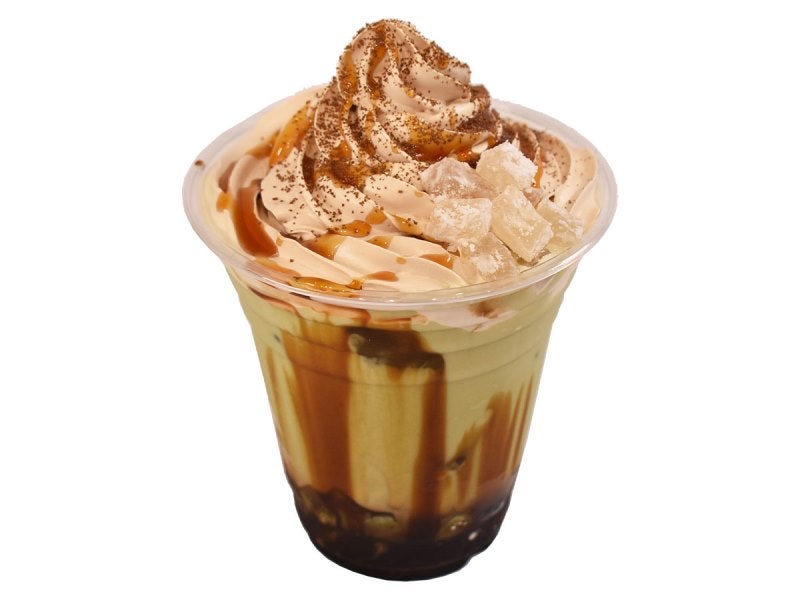 - 「ホイップ(ほうじ茶)」と「ほうじ茶パウダー」をトッピングして提供。