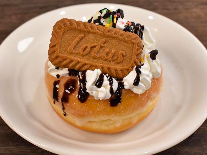 ふわふわのドーナツの上に香ばしくサクサクなビスケットをトッピング!