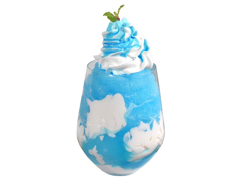 - 「ブルーキュラソー」と「スペアミント」をトッピングして提供。