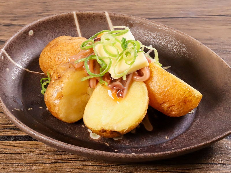 - 小口切りにした「わけぎ」と、「バター」を乗せて提供。