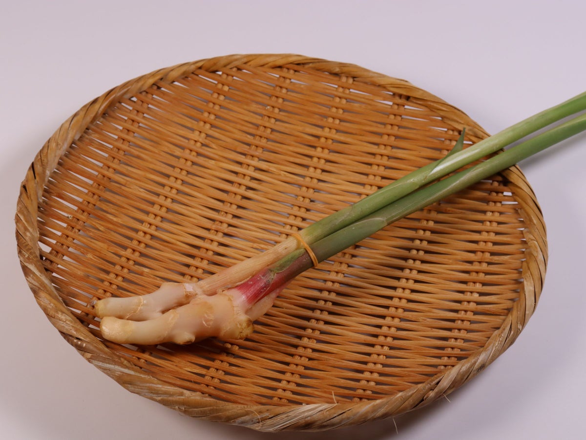 - 「葉生姜」を水洗いし、葉の部分を切り落とします。