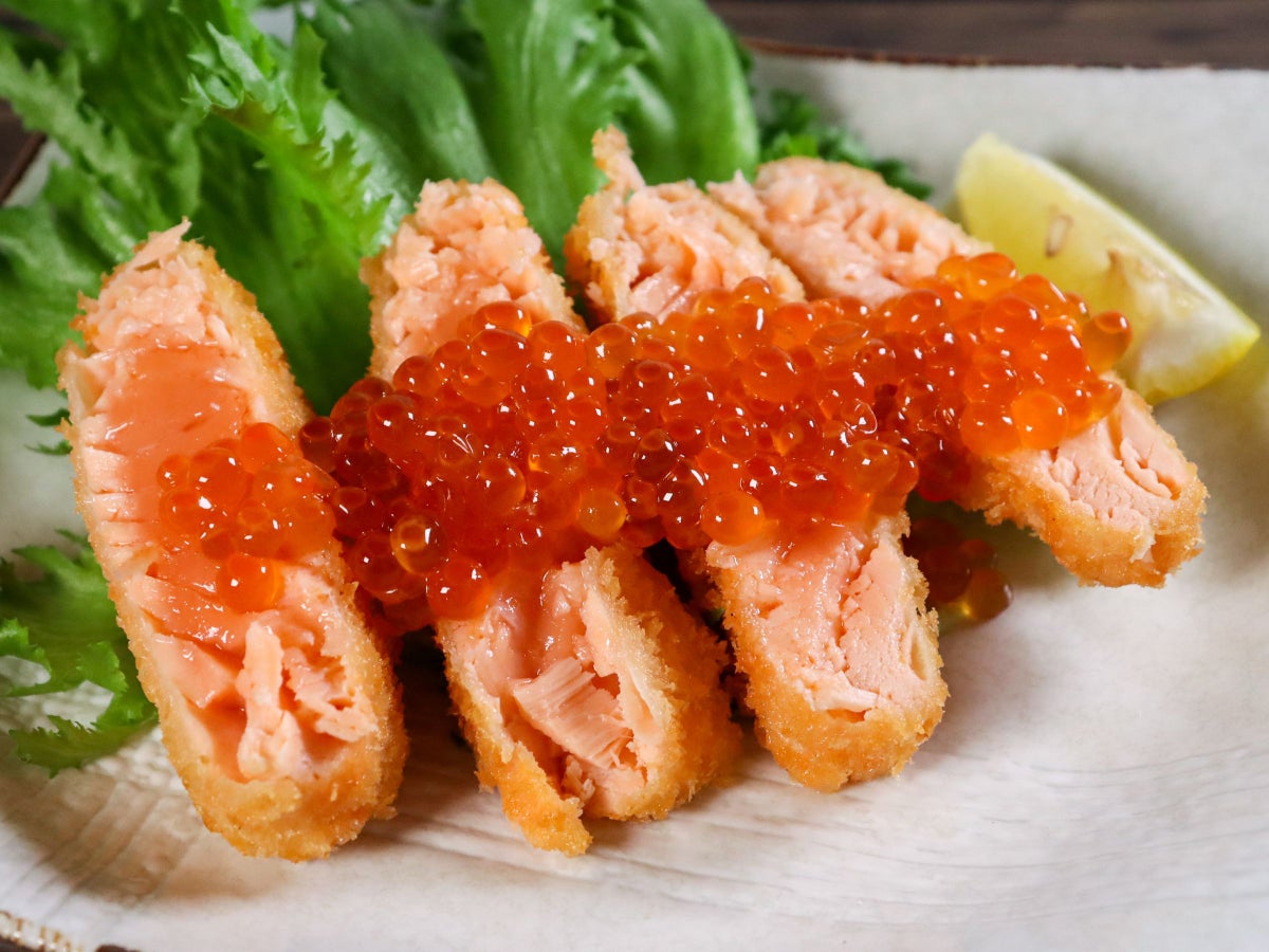 - 「味付けいくら」をかけて「レモン」を添えて提供。