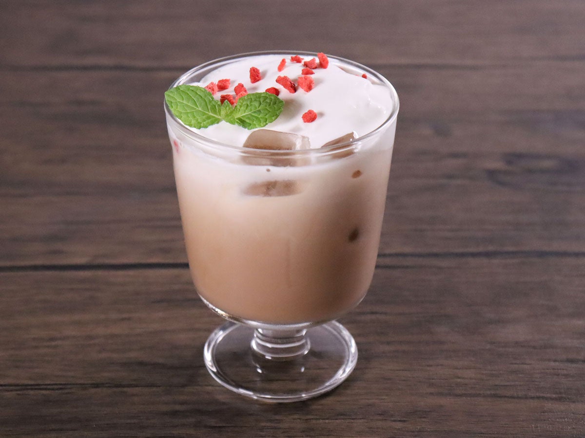 - 「フリーズドライカットいちご」と「スペアミント」をのせて提供。