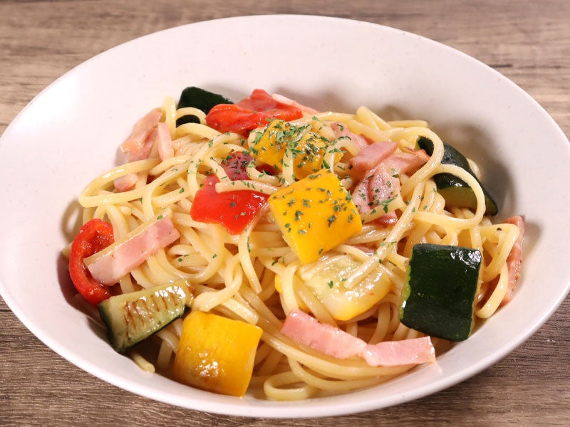 甘みが詰まったグリル野菜を使用しました。 ゴロゴロカットなので具材感ばっちり!夏のパスタメニューにおすすめです!