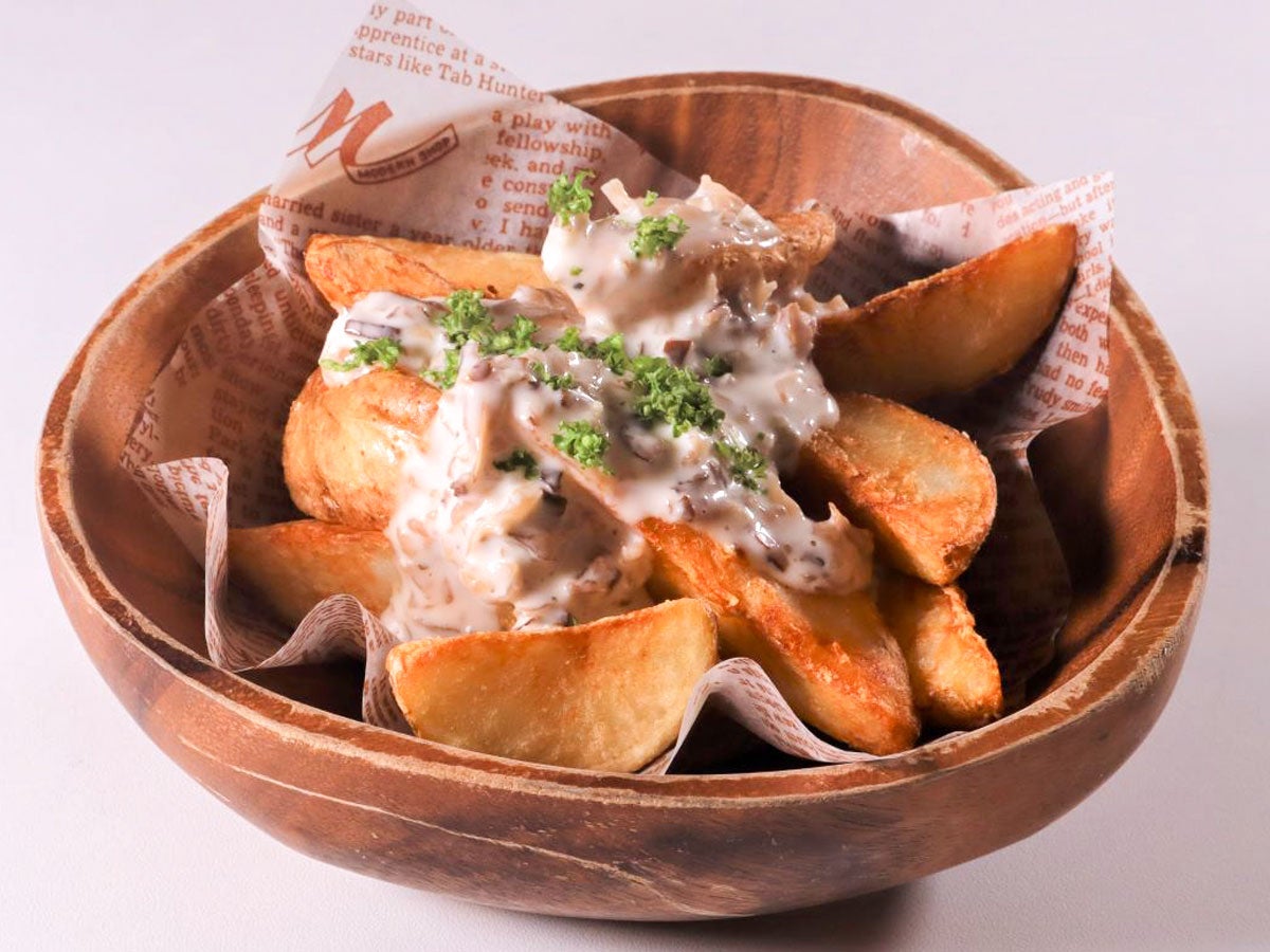 燻製の香りがお酒とマッチ!おつまみ向けのポテトのアレンジです。ソースなしバージョンとソースありバージョンを並べてメニューインすることで、客単価UPを狙ってみませんか?