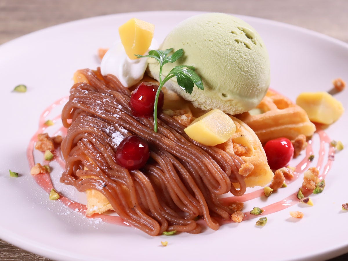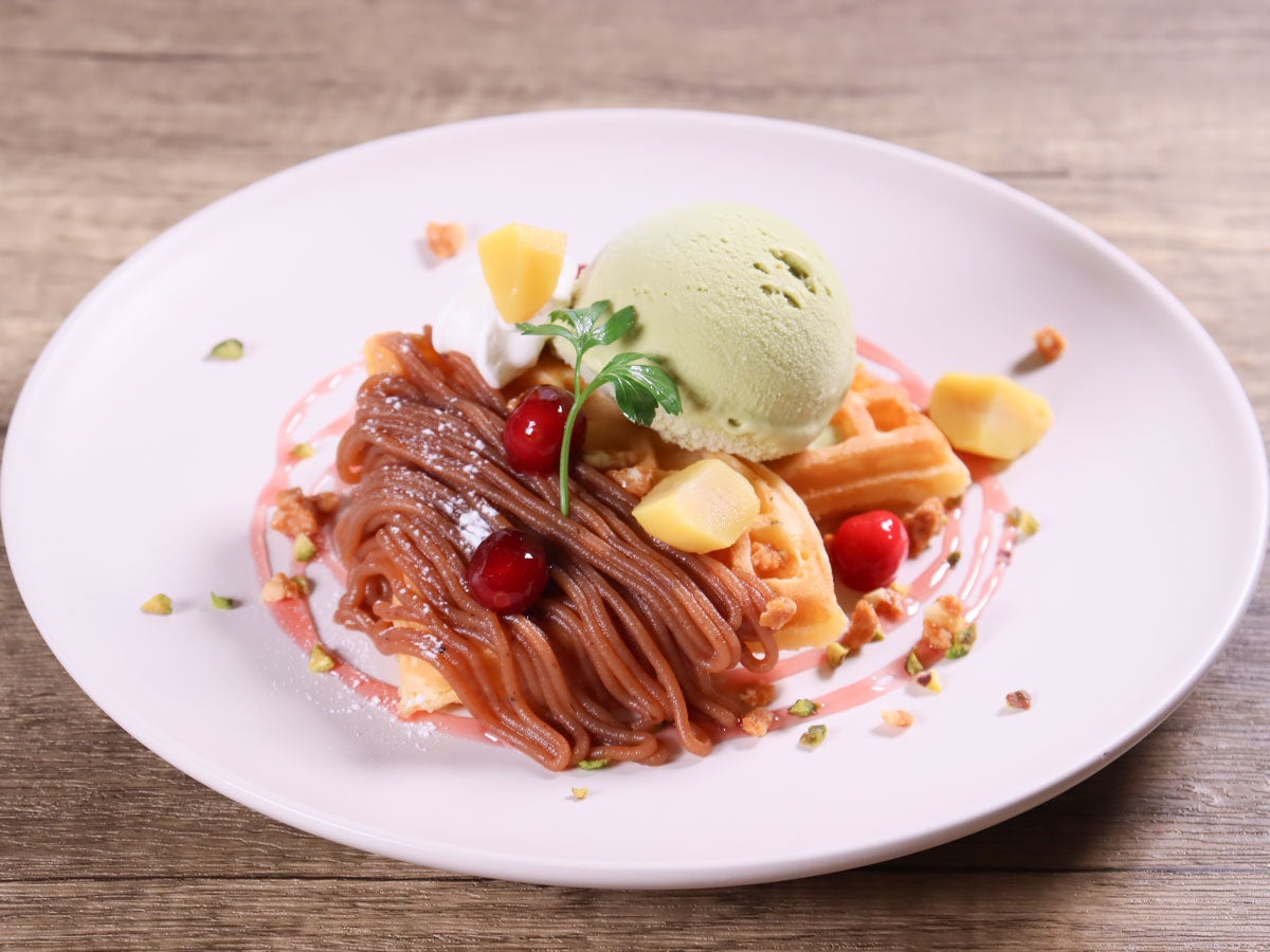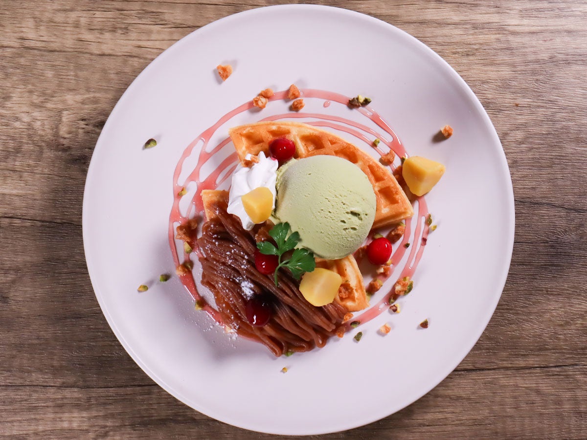 栗とピスタチオのモンブラン風ワッフル