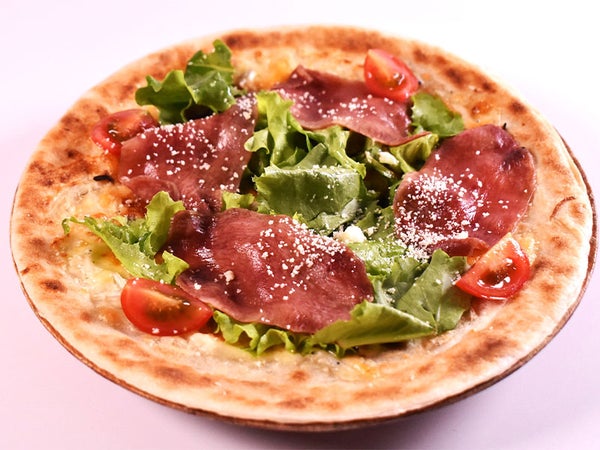 おばけチーズと赤黒ソースのピッツァ