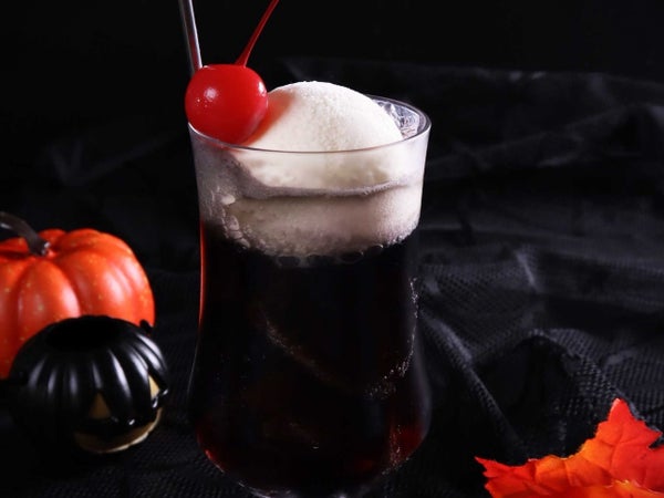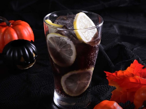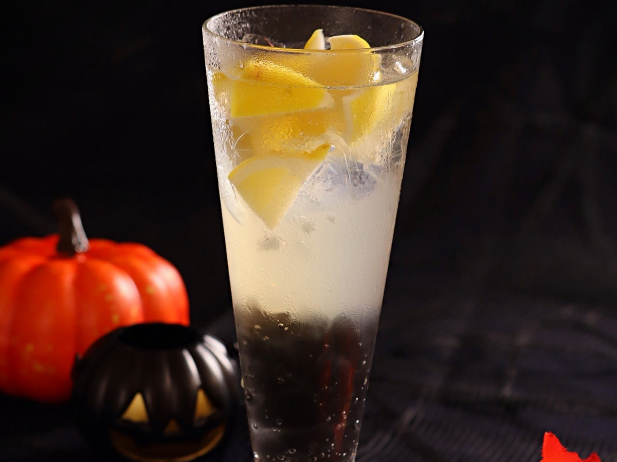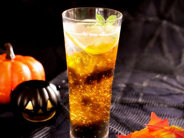 レモンサワーの中で舞う黒いジュレが、夜の風に翻る魔女のローブのようです。