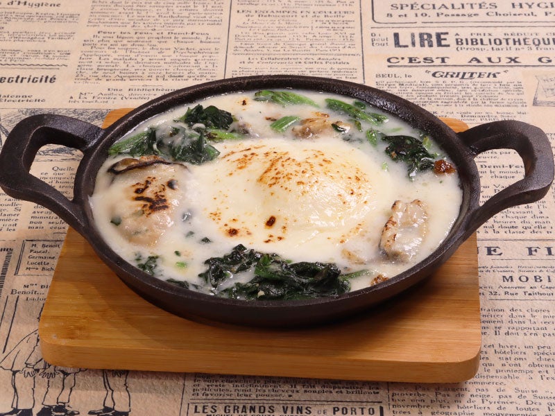 かきとほうれん草のブラータチーズグラタン