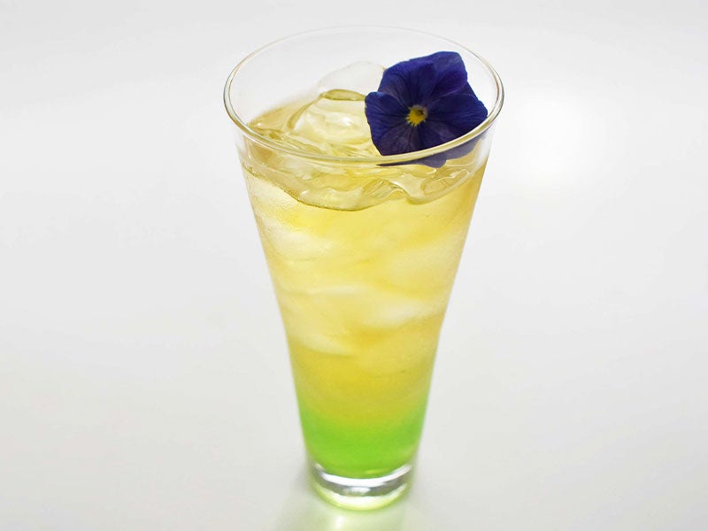 - ➁.に優しく「ジャスミン茶」を注ぎ「エディブルフラワー」を添えて提供。