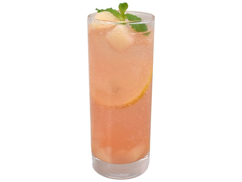 - 「ソーダ」を注ぎ、「スペアミント」を添えて提供。