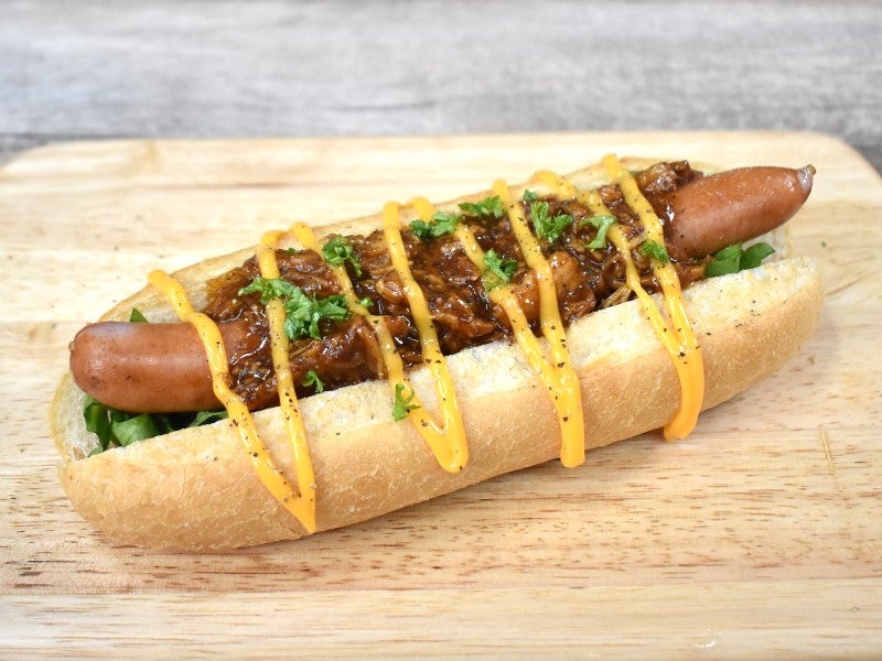 ジャンク系のホットドッグです。肉肉しい、ボリューム感のあるホットドッグメニューアレンジに。