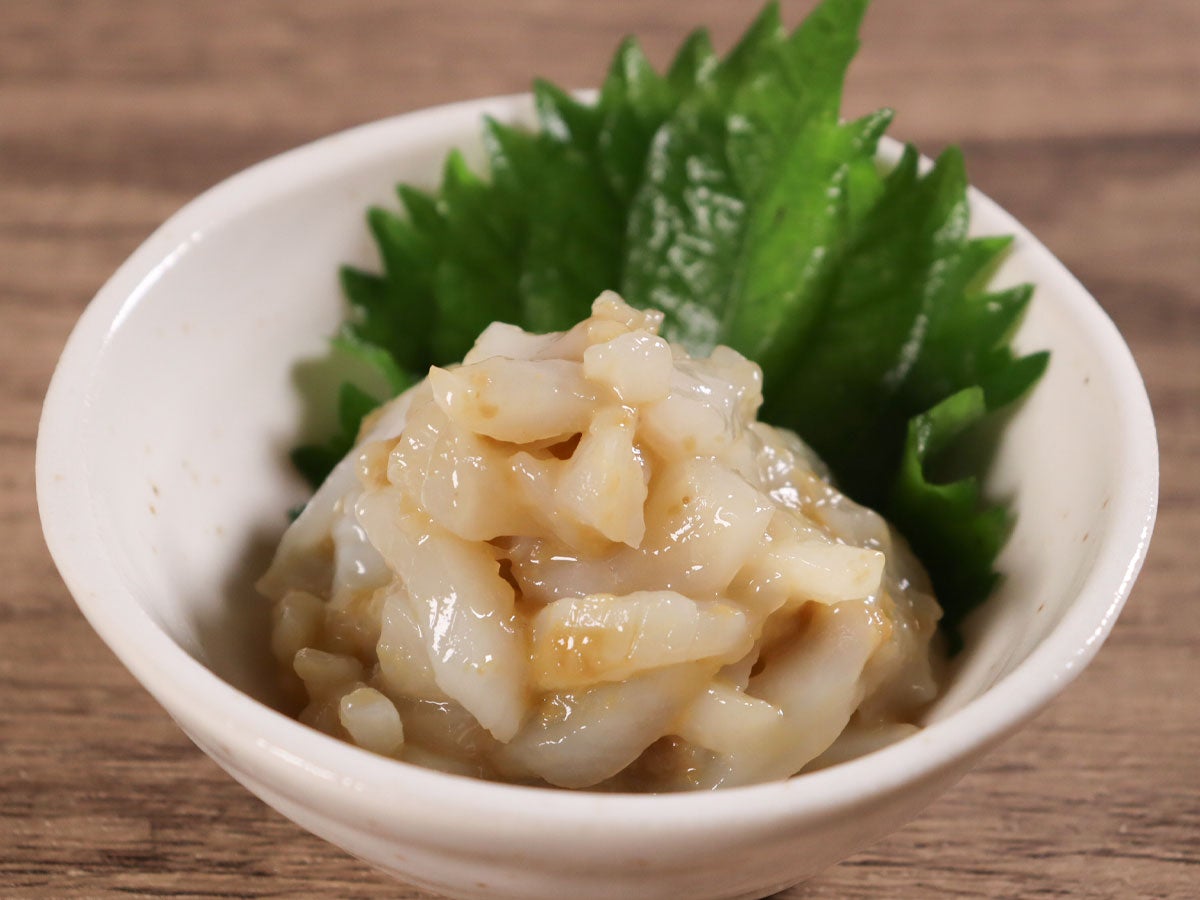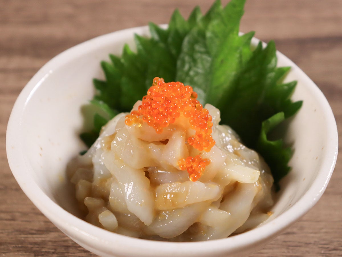 - 「まついか細切り」を解凍し、「かにみそ」と和える。
