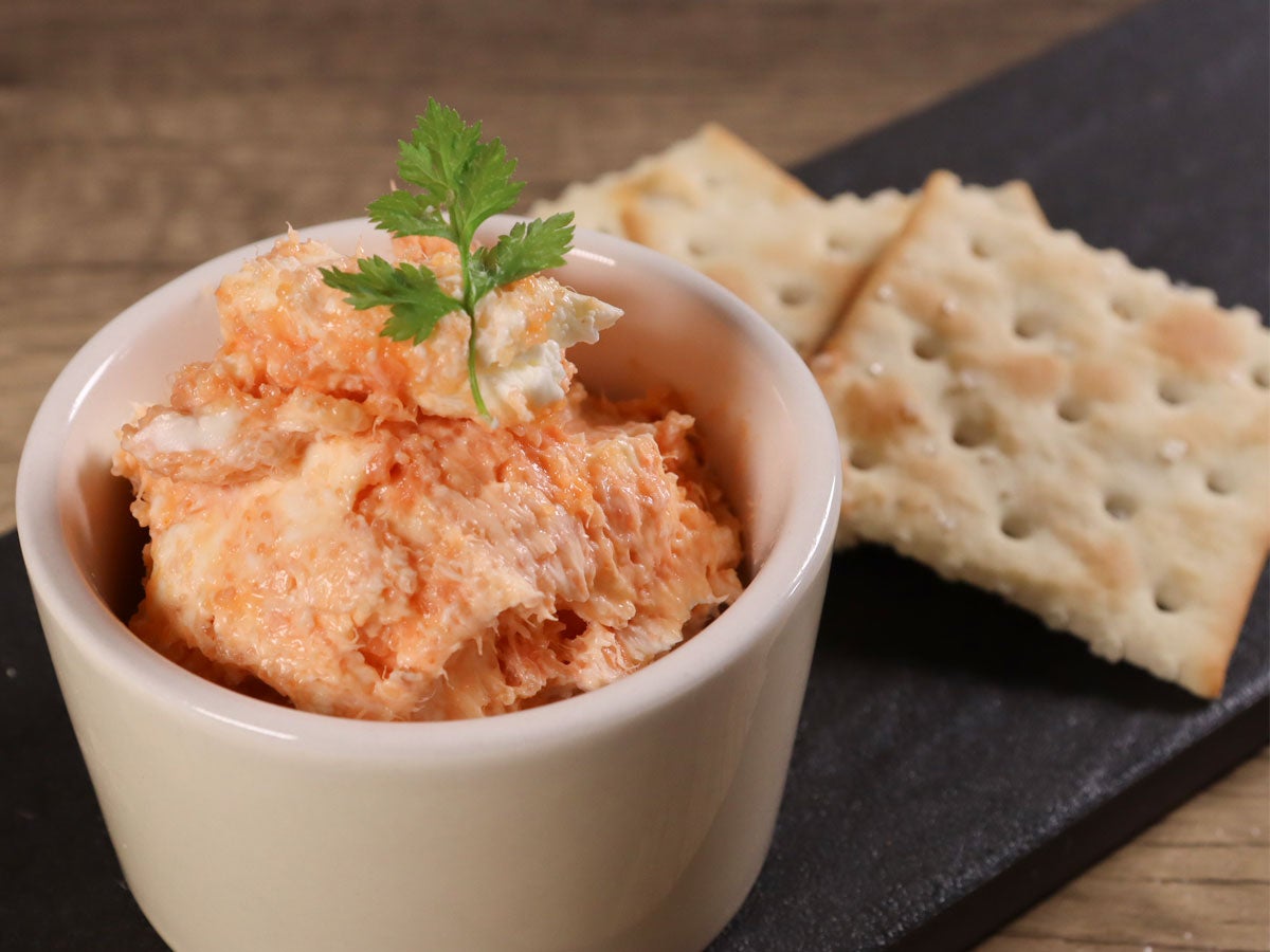 - 「明太子好きのための鮭明太」と「クリームチーズ」を混ぜ合わせる。