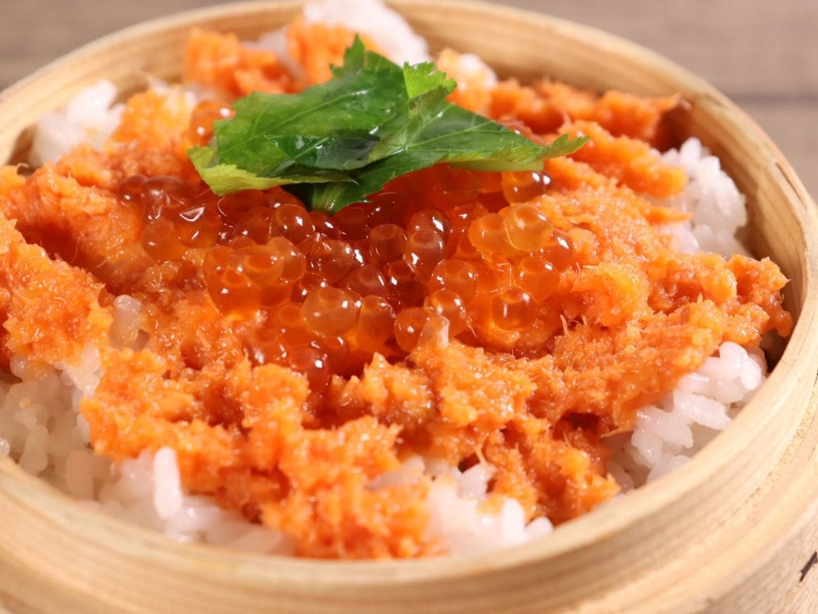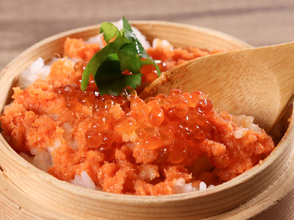 - ①の上に「鮭明太」と「いくら」を盛り付ける。